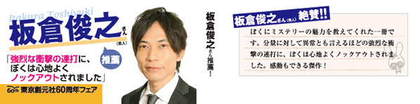 文芸 電子書籍 試し読み シャドウ 著道尾秀介 4.3 レビューを見る 「シャドウ」評価・レビュー 評価 4.3 人は、死んだらどうなるの?――いなくなるのよ――いなくなって、どうなるの?――いなくなって、それだけなの――。その会話から三年後、凰介の母はこの世を去った。父の洋一郎と二人だけの暮らしが始まって数日後、幼馴染みの亜紀の母親が自殺を遂げる。夫の職場である医科大学の研究棟の屋上から飛び降りたのだ。そして亜紀が交通事故に遭い、洋一郎までもが……。父とのささやかな幸せを願う小学五年生の少年が、苦悩の果てに辿り着いた驚愕の真実とは? いま最も注目される俊英が放つ、巧緻に描かれた傑作。第七回本格ミステリ大賞受賞作。 価格 605円 (税込) 550円 (+消費税 55円) 付与コイン 新規限定! 280コイン還元 (*内訳) カートに入れる カートを見る 無料会員登録 はじめての方へ シリーズ予約 予約でコインUP! シリーズ予約 シリーズ予約済み 付与コインの内訳 280コイン 会員ランク (今月ランクなし) 1% 初回50%コイン還元 会員登録から30日以内の初回購入に限り、合計金額(税抜)から50%コイン還元適用 複数商品の購入で付与コイン数に変動があります。 会員ランクの付与率は購入処理完了時の会員ランクに基づきます。 そのため、現在表示中の付与率から変わる場合があります。 【クーポンの利用について】 クーポンをご利用の場合、一部のクーポンを除いて、コイン還元キャンペーンの対象外となります。 詳細は各クーポンページをご参照ください。 購入特典 シリーズ 関連作品 評価・レビュー あらすじ・内容 人は、死んだらどうなるの?――いなくなるのよ――いなくなって、どうなるの?――いなくなって、それだけなの――。その会話から三年後、凰介の母はこの世を去った。父の洋一郎と二人だけの暮らしが始まって数日後、幼馴染みの亜紀の母親が自殺を遂げる。夫の職場である医科大学の研究棟の屋上から飛び降りたのだ。そして亜紀が交通事故に遭い、洋一郎までもが……。父とのささやかな幸せを願う小学五年生の少年が、苦悩の果てに辿り着いた驚愕の真実とは? いま最も注目される俊英が放つ、巧緻に描かれた傑作。第七回本格ミステリ大賞受賞作。 作品情報 シリーズ シャドウ 著者 道尾秀介(著) レーベル ―― 出版社 東京創元社 カテゴリ 文芸・小説 配信開始日 2013/10/24 底本発行日 2006/9 ページ概数 331 ページ概数 一般的なスマートフォンにてBOOK☆WALKERアプリの標準文字サイズで表示したときのページ数です。お使いの機種、表示の文字サイズによりページ数は変化しますので参考値としてご利用ください。 ・キャンペーンの内容や期間は予告なく変更する場合があります。 ・サイトに記載の日時は日本標準時(Japan Standard Time)です。 対応端末 PCブラウザビューア Android(スマホ/タブレット) iPhone/iPad 推奨環境 ジャンル 推理 ミステリー・推理・サスペンス このミステリーがすごい! 2007年「このミス」受賞作 シェア ギフト購入 ギフトとして購入 「シャドウ」シリーズ一覧(1冊) もっと見る 各605円(税込) まとめてカートに入れる 古い順 新しい順 試し読み 文芸 電子書籍 シャドウ 人は、死んだらどうなるの?――いなくなるのよ――いなくなって、どうなるの?――いなくなって、それだけなの――。その会話から三年後、凰介の母はこの世を去った。父の洋一郎と二人だけの暮らしが始まって数日後、幼馴染みの亜紀の母親が自殺を遂げる。夫の職場である医科大学の研究棟の屋上から飛び降りたのだ。そして亜紀が交通事故に遭い、洋一郎までもが……。父とのささやかな幸せを願う小学五年生の少年が、苦悩の果てに辿り着いた驚愕の真実とは? いま最も注目される俊英が放つ、巧緻に描かれた傑作。第七回本格ミステリ大賞受賞作。 605円 (税込) 550円 (+消費税 55円) 新規限定! 280コイン還元 (*内訳) カートに入れる カートを見る 試し読み 付与コインの内訳 280コイン 会員ランク (今月ランクなし) 1% 初回50%コイン還元 会員登録から30日以内の初回購入に限り、合計金額(税抜)から50%コイン還元適用 複数商品の購入で付与コイン数に変動があります。 会員ランクの付与率は購入処理完了時の会員ランクに基づきます。 そのため、現在表示中の付与率から変わる場合があります。 【クーポンの利用について】 クーポンをご利用の場合、一部のクーポンを除いて、コイン還元キャンペーンの対象外となります。 詳細は各クーポンページをご参照ください。